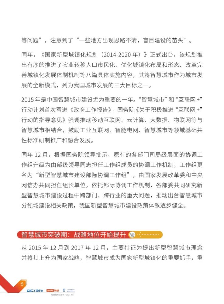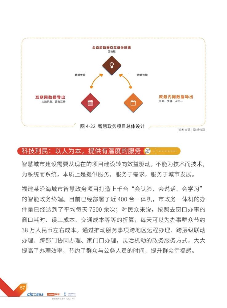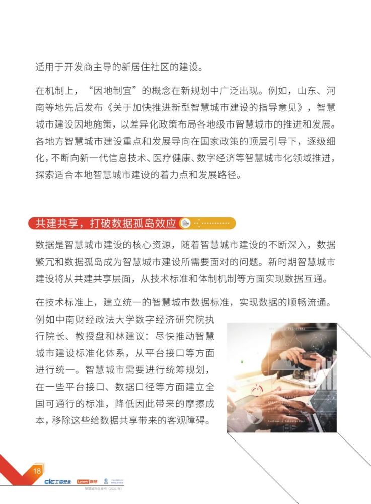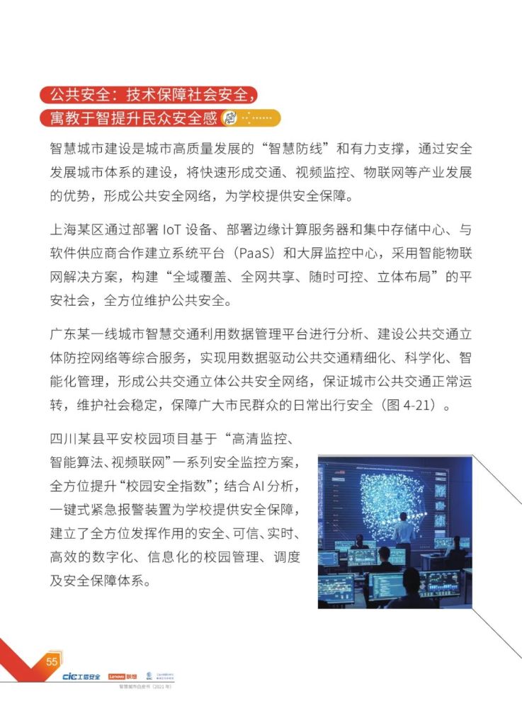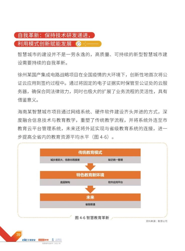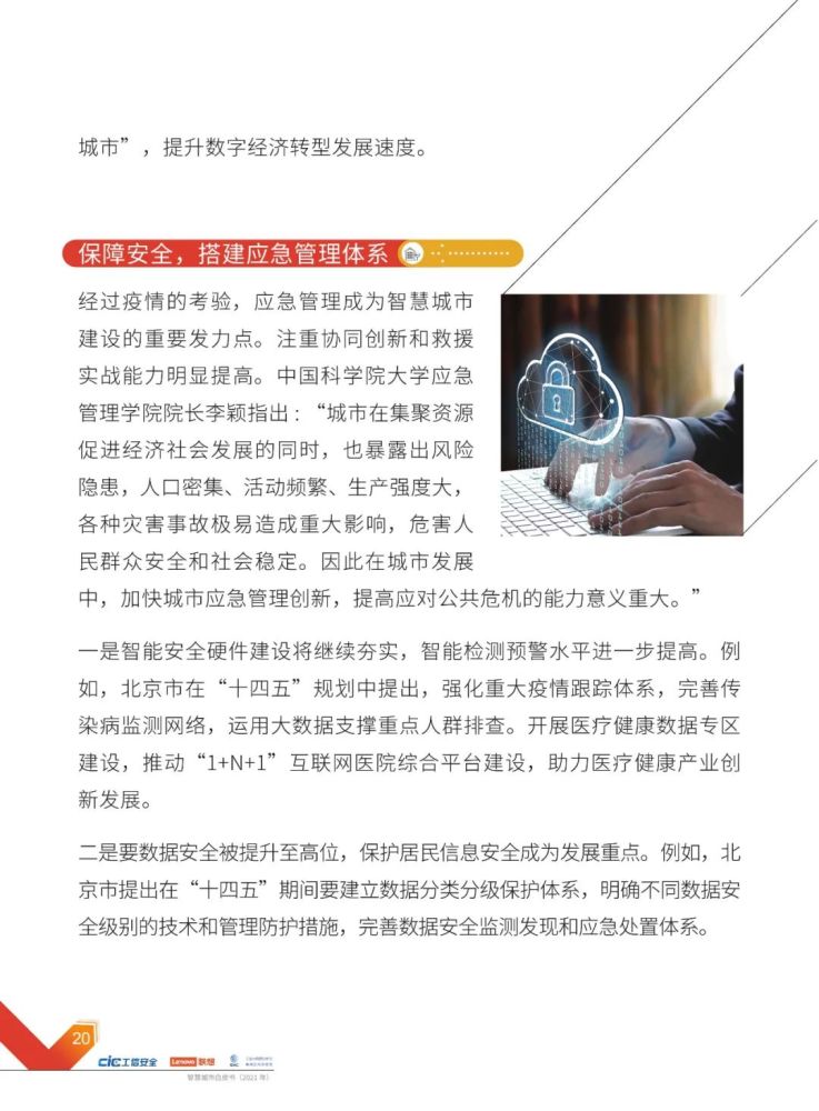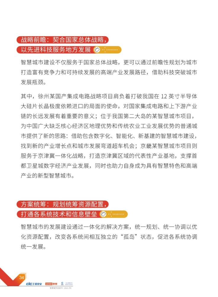 近日,由国家工业信息安全发展研究中心、联想集团、中国产业互联网发展联盟、工业大数据分析与集成应用实验室共同编制的《依托智慧服务,共创新型智慧城市——智慧城市白皮书(2021年)》(以下简称“白皮书”)正式发布。该白皮书采用案例分析、实证分析、调研分析等研究方法,深入剖析我国智慧城市发展历程与内在规律,针对智慧城市当前的发展情况,提出一系列智慧城市建设的新理念、新架构、新建议,旨在为建设应用技术先进、社会效益良好、生态环境友好的新型智慧城市提供参考。